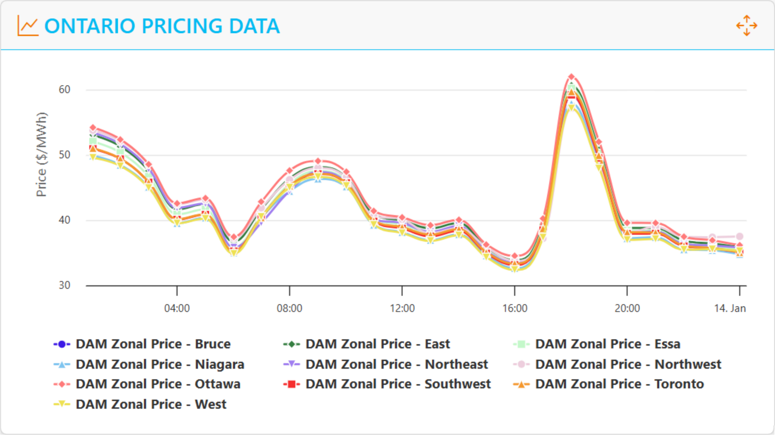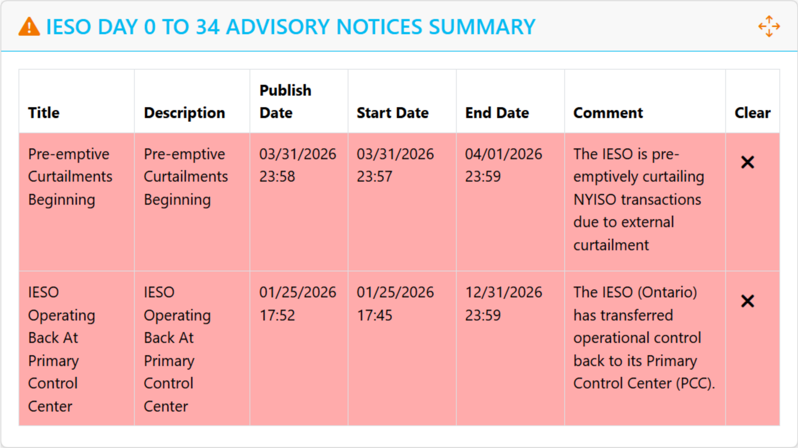 Select additional tables and charts to keep you informed including IESO Advisory Notices, Weather Charts, Forecast Error, and more.